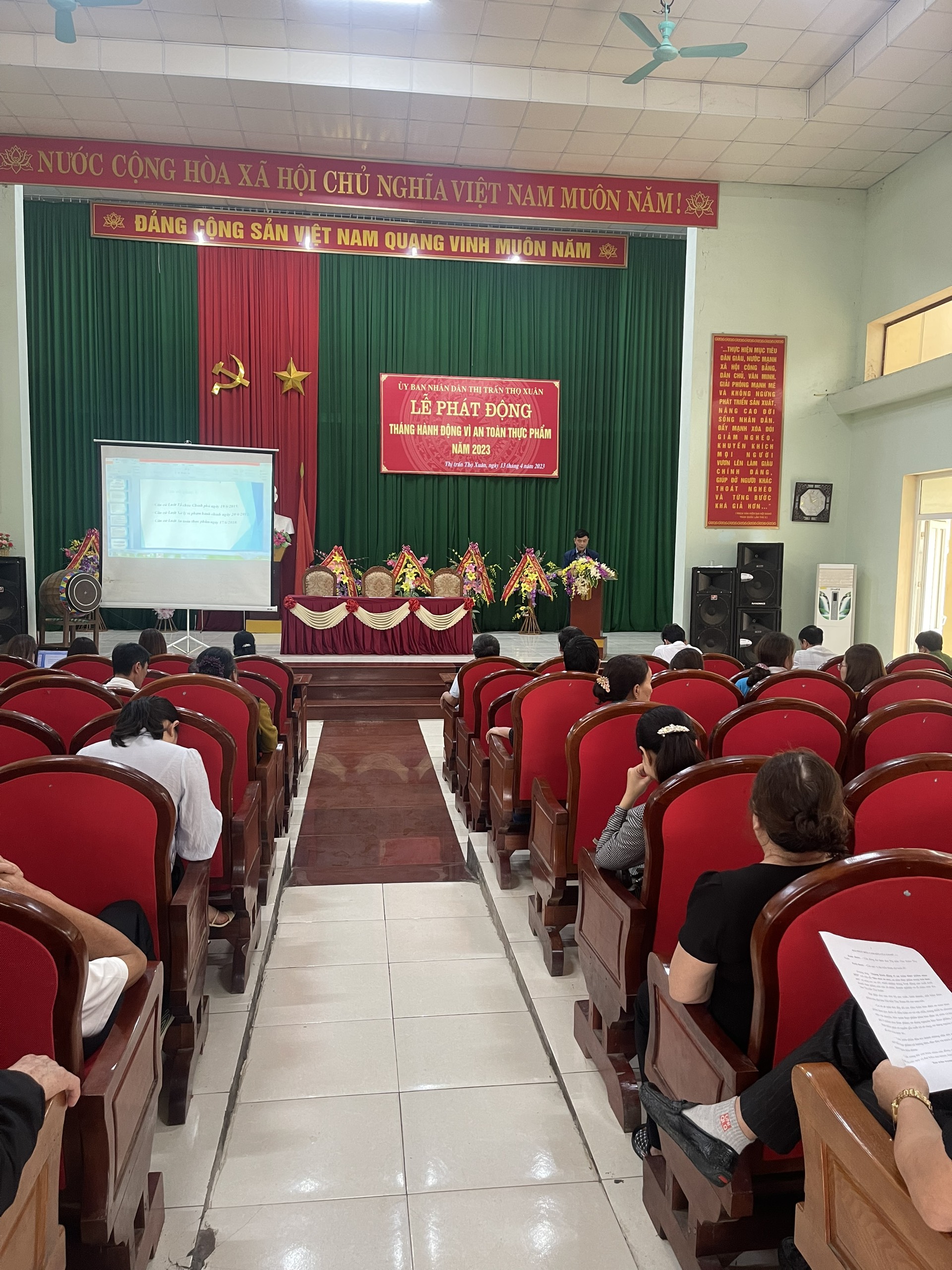 Thực hiện Kế hoạch số 87/KH-UBND ngày 05 /4/2023 của UBND huyện Thọ Xuân về triển khai “Tháng hành động vì ATTP” năm 2023. Tháng hành động vì ATTP năm 2023 diễn ra từ ngày 15-4 đến ngày 15-5-2023 trên phạm vi toàn huyện với chủ đề: “Đảm bảo an ninh, ATTP trong tình hình mới”. Nhằm nâng cao kiến thức trình độ chuyên môn, năng lực quản lý và thực thi pháp luật của cán bộ quản lý về an toàn thực phẩm; nâng cao nhận thức, ý thức và thực hành tốt ATTP cho người sản xuất, chế biến, kinh doanh và người tiêu dùng thực phẩm để phòng ngừa, giảm thiểu ngộ độc thực phẩm do tiêu dùng thực phẩm không an toàn....